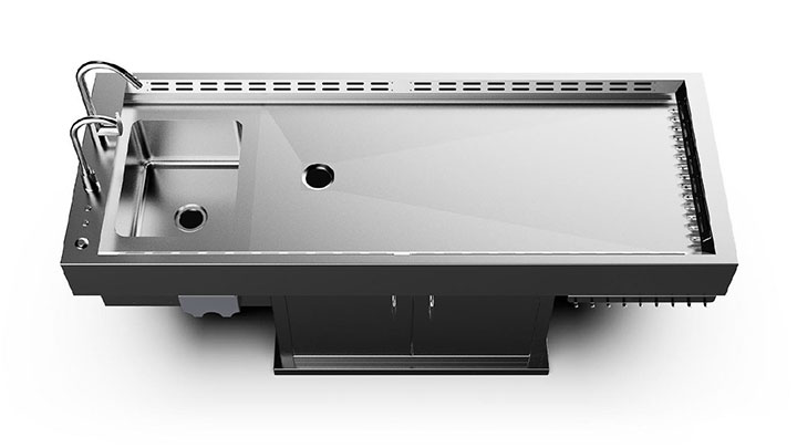 | 水池配备有抽拉式水龙头和红外感应水龙头,冷热水温可调(需跟外热水器连接) | |