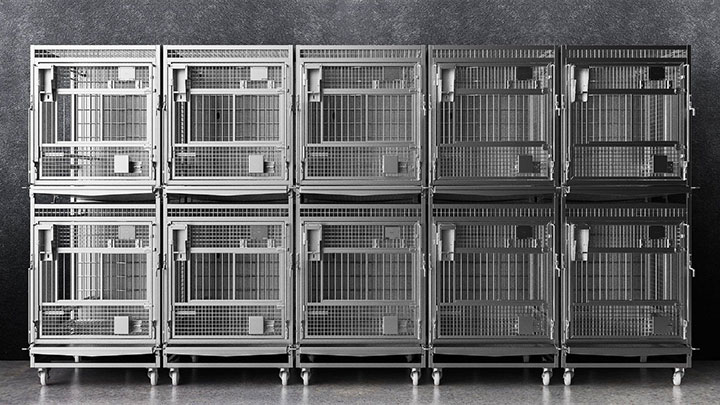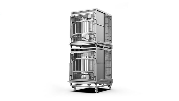 | 笼具侧门 | 每层笼具两侧面均有可拉开和关闭的小门,相邻笼能互通,侧面可活动门左侧为实心不锈钢板,右侧为不锈钢网格;侧门安装牢固,结合紧密,移动便捷,不产生晃动情况。相邻笼具并排放置可无缝牢固连接并锁定,笼具移动中,连接扣不能影响人员安全 |